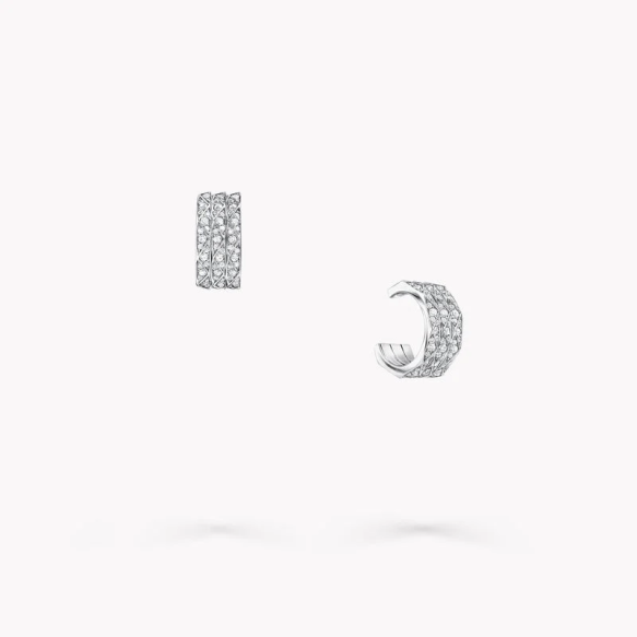 18K 하이엔드 미러급 그라프 로렌스 시그니처 트리플 파베 후프 이어링 RGE1582