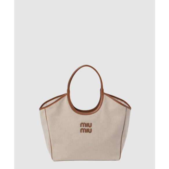 미우미우 아이비 캔버스 레더 토트백 5BG281