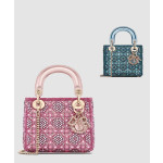 디올 미니 레이디백 메탈릭 카프스킨 사틴 비즈 자수 M0505