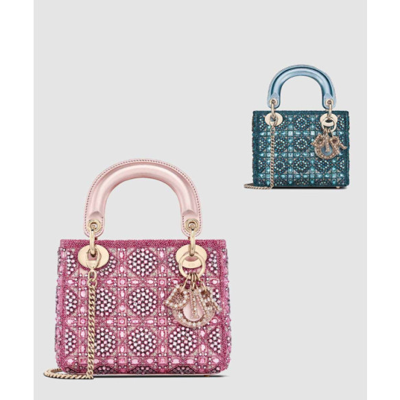 디올 미니 레이디백 메탈릭 카프스킨 사틴 비즈 자수 M0505 > BAG(가방)