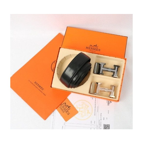 (국내배송) 에르메스 투버클 컷팅 큐빅로고 블랙 벨트