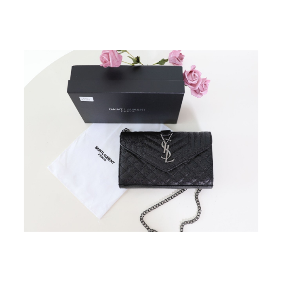 (국내배송) 생로랑 빈티지 블랙 카프스킨 마틀라세 엔벨로프 모노그램 은장
