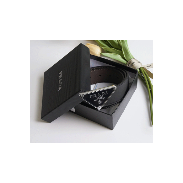 (국내배송) 프라다 삼각 로고 사피아노 레더 벨트