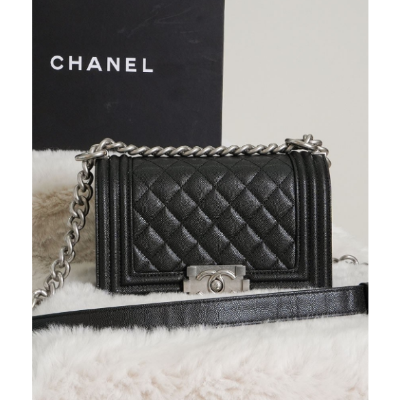 (국내배송) 샤넬 캐비어 빈티지 은장 플랩 보이백 스몰