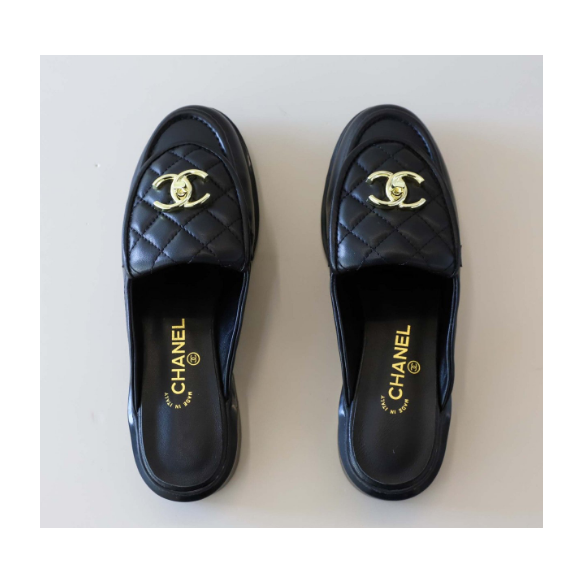 (국내배송) 샤넬 CC 로고 퀼팅 턴락 뮬 클로그 슬리퍼