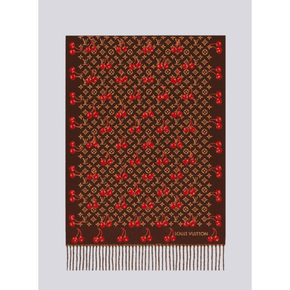 (국내배송) 루이비통 모노그램 체리 울 자카드 태슬 숄 머플러