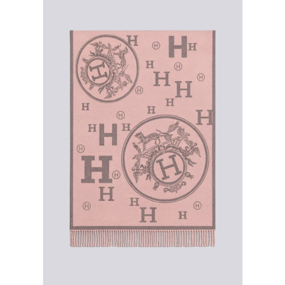 (국내배송) 에르메스 H로고 아트워크 울 자카드 태슬 숄 머플러