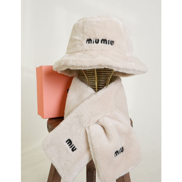 (국내배송) 미우미우 자수 로고 시어링 버킷햇 & 시어링 머플러 2PCS 셋