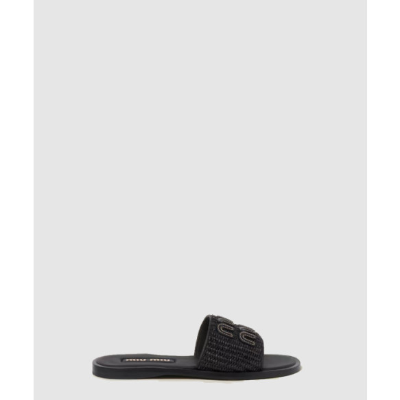 미우미우 라피아 이펙트 우븐 패브릭 슬라이드 5XX644