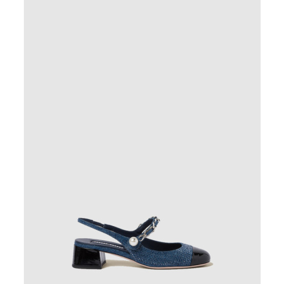 미우미우 펄 체인 데님 슬링백 5I048E