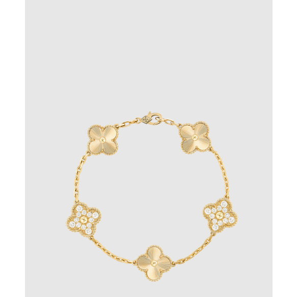 18K 하이엔드 미러급 반클리프 빈티지 알함브라 브레이슬릿 5모티브 기요세 다이아 4KN00